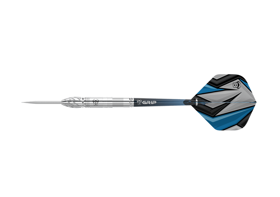 BULL'S Stone Darts - Steel Tip - 90% Tungsten - S1. The Stone Series impresses with its numerous and varied grip zones, providing the perfect solution for every grip position. Made with 90% tungsten, these darts ensure optimal balance and durability. Players have the freedom to grip the dart wherever it suits them best, while enjoying excellent hold and control. The front section of the barrel stands out with specialized grip patterns that offer maximum hold, preventing slippage even during intense gameplay.