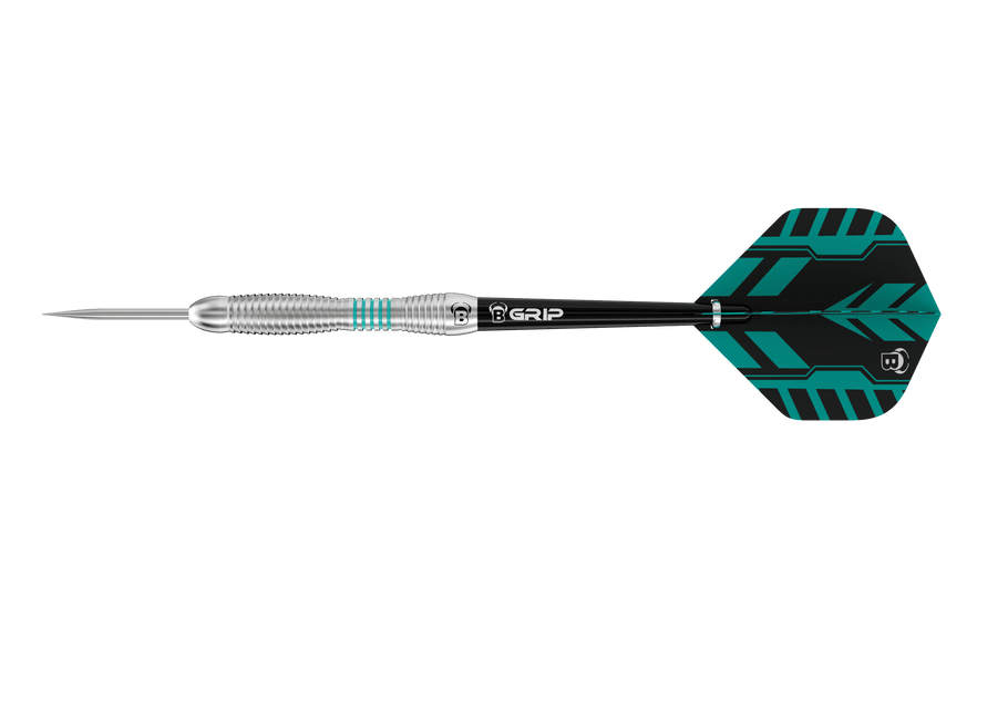 BULL'S Veco Darts - Steel Tip - 90% Tungsten - V3. The Veco series stands out with its innovative combination of high-quality materials and smart design. With an impressive 90% tungsten composition, these darts ensure perfect balance and durability. A unique feature of all Veco darts is the color-coded grip indent, allowing you to consistently reproduce your grip with each throw. This supports a consistent throwing technique. The unmarked areas feature a shark grip, offering maximum hold and preventing any slippage during your game.The Veco V3 stands out with its grip indent positioned at the rear of the barrel. This makes itperfect for players who prefer a grip further back on the dart. The precisely placed grip marking helps you find the ideal grip position, ensuring smooth and controlled throws every time.