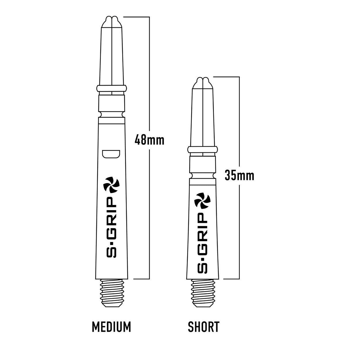 The highly popular Supergrip shaft is now available with a firm rotating top, which is designed to spin if a following dart makes contact. This reduces deflections and bounce outs. The factory fitted ring keeps the flight firmly locked in place.