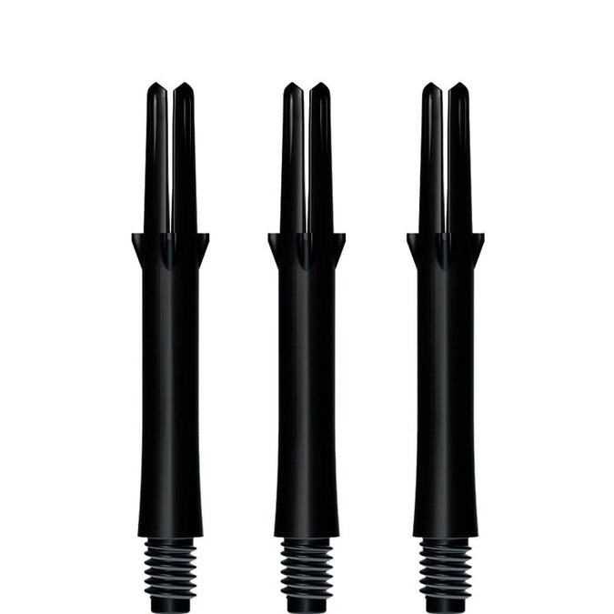 L-Style L-Shafts - Straight - Locked. Japanese material manufacturing technology. Precision moulded, for accurate 2ba thread form. The flights work best when using the Shell Lock Rings or the Champagne Rings as these help lock everything together to create a very strong hold. Measurement is taken from the top of the thread to the bottom of the slits. Each pack contains 3 shafts plus a set of champagne rings. L-Style - L-Shafts - Straight - Black